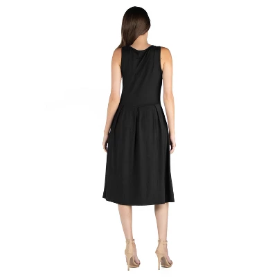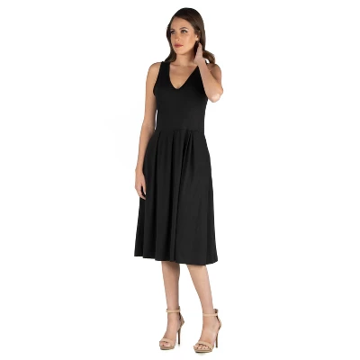 Perfect for any occasion, this flattering dress brings in retro vibes while still staying chic and modern. The v neck, pockets, slim fit waistline and soft flared hemline are the ideal mix of beauty and utility. Easy to wear by itself during the warmer months and for layering in the colder months, this dress is a timeless must have piece. Made in the USA from a comfortable stretch material. Rayon Spandex Knit.