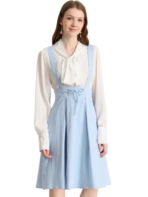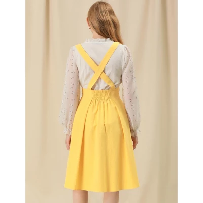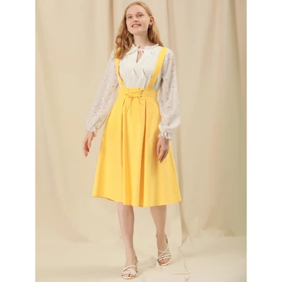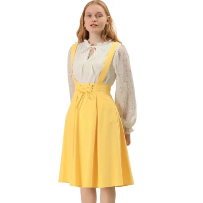 - Invisible Side Zipper, Below the Knee, A Line, Suspender Skirt