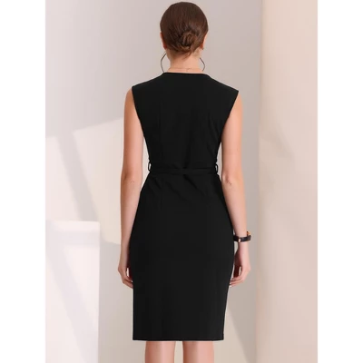 Simple and fitted, this office dress is a must for your work wardrobe. The pencil design comes with a wrap v-neck, sleeveless, and a belted waist. This dress sits just below the knee and is perfect for formal events when paired with court heels. The timeless design and soft breathable material, easily make you charming and eye-catching in the crowd.