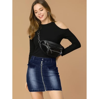 Show off your charm in this Allegra K denim short skirt in all season. Casual look of a skirt with the zip front and high waist. This zip front skirt is an classic that looks great with a variety of styles. Pair it with sloid color top or stylish blouse you like to finish the casual duty-off look.