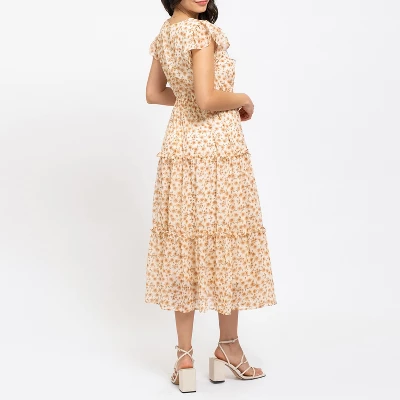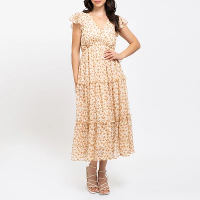 Elevate your summer wardrobe with the August Sky Women’s Floral Ruffle Sleeve Tiered Midi Dress. Designed for various occasions, from weddings to family photos, dates to Mother’s Day brunch, this dress is both chic and versatile. The flattering A-line silhouette and V-neckline create a stunning fit, while the ruffle sleeves add a touch of femininity. The tiered midi skirt adds playful movement, and the exquisite floral pattern adds a burst of elegance. Fully lined for comfort and coverage, this dress is as comfortable as it is stylish. Step into the season with confidence and style in this gorgeous midi dress that’s perfect for any summer event. Order now and make a fashion statement wherever you go!