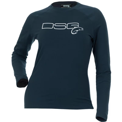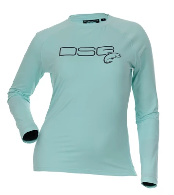 The fishing line follows DSG Outerwear’s core strategy of building women-specific apparel that is functional and fashionable. All DSG Outerwear’s UPF fishing shirts are designed by women with input from women fishermen and backed by a woman-owned company! This shirt has UPF 50+ sun protection and that is the highest rating on the ultraviolet protection factor scale. UPF measures how much of the sun’s UV radiation is absorbed by the fabric, protecting your skin from overexposure. Don’t let a bad sunburn ruin your outdoor fun; wear a UPF 50 fishing shirt from DSG!Women’s specific fit and design UPF 50+ sun protection Moisture wickingQuick dryStretch fabric for comfortable fitLarge DSG Fishing logo on front chestAvailable in 10 colors: Bubble Gum, Glacier, Deep Waters, Sun-Washed Aqua, Dark Charcoal, Rose, Salmon, Sea Blue, Slate, and AquaAvailable in sizes: XS-3XL”