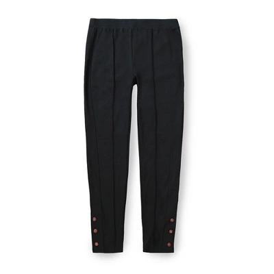 Our button cuff stretch ponte legging pants will be your new wardrobe essential. Features an elastic waistband with a slim comfortable fit, welt pockets, and leather buttons at the ankle.