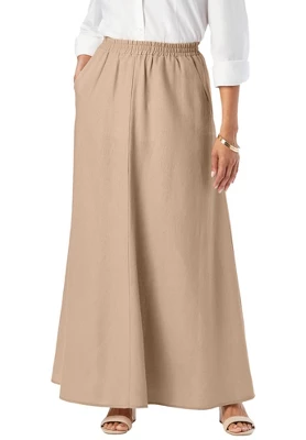 A must-have addition to your spring-into-summer wardrobe, this lightweight linen maxi skirt is endlessly versatile and perfect for every occasion. Full elastic waistband for comfort and ease. Side slash pockets.