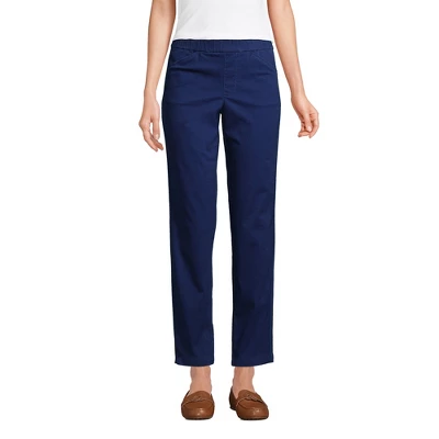 Our Lands’ End Women’s Plus Size Mid Rise Pull On Chino Ankle Pants are the perfect example of stylish comfort. Cute comfortable stretchy and stylish you can wear these pants from morning until night and never suffer an ounce of discomfort. Made from a crisp cotton twill with just a hint of stretch and a covered elastic waistband these pants offer that stretchy mobility you need to fit just right so they feel and look amazing. The breathable nature of cotton also keeps you cool and comfortable when you work or play indoors or outside. But the best part? They present like dress pants thanks to the finished hem onseam pockets back welt pockets and faux zip fly. But they are still comfy enough to lounge in. You can truly consider these work pants weekend wear appropriate. How about that?! Set yourself up for a cute and comfortable day and wear them with dress shirts blazers suit jackets cardigan sweaters or a basic cotton tshirt or button-down shirt for a run to the store. Add some sandals heels or slip-ons and you’ll have a completely stylish outfit in minutes. Women’s Mid Rise Pull On Chino Ankle Pants are available in a variety of solid colors and prints. Regular petite tall and plus size pants available. Lands’ End shifts proportions and makes fabric adjustments for quality plus size pieces. For a more relaxed fit consider ordering one size larger. Ankle length inseam is 26 inches. Plus size pull-on Chino pants start at 16 Plus to 26 plus. Tall sizes available from size 6 Tall to size 18 Tall. Regular sizes begin at size 2 to size 14. Petite sizes available from size 2 to size 18 petite. Sizes are based according to body measurements. Consult the sizing chart for your true size fit.