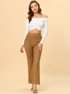 Step into style with these elegant khaki palazzo pants. Made from scuba crepe fabric, featuring a chic buckle detail for a sophisticated look.
