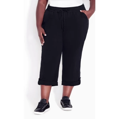 Introducing the Cotton Roll Up Capri! These versatile and stylish pants are perfect for everyday wear. With a comfortable drawstring waistband, relaxed fit, and stretch Cotton fabrication, they will become your new favorite go-to. Plus, the rolled hemline adds a touch of chic to any outfit. Whether you dress them up or down, these capri pants are sure to make a statement.Finish your look with a boho chic blouse. Everyday style made easy, Avenue is your one-stop-shop for plus size fashion. Inspired by a comfort-meets-style approach, this effortless brand marries relaxed silhouettes with dynamic prints and colors. From casual daywear to staple denim, Avenue has simplified your everyday dressing. Take your day-to-day look to new heights with comfortable basics or eye-catchingly printed pieces, all designed to keep you comfortable while flaunting your curves to perfection. Available in sizes 14 – 40.