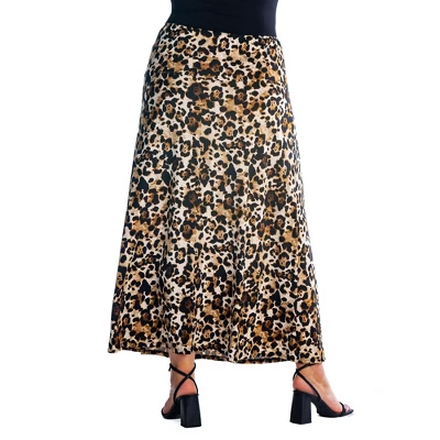 Womens Plus Size Brown Animal Print Maxi Skirt